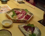 まだ熊本名物の馬刺しを食べてなかったので、馬刺し専門店へ